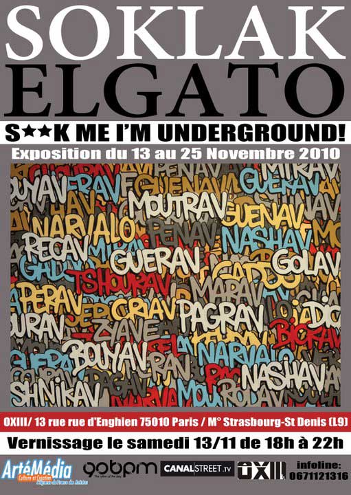 Du 13 au 25 Novembre 2010, le lieu artistique Ô XIII accueille Soklak pour une exposition personnelle intitulée S**k me, I'm underground !.