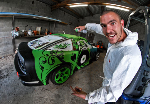 Du côté de Grenoble, la Slide Drift Team se démène pour faire avancer les choses et rester à l'avant-garde niveau tendances. Le Drift ne se limite pas à des caisses faisant des zig-zags sur les routes de montagne ou sur les circuits, c'est avant tout un état d'esprit, une manière de vivre. En surfant sur les réseaux sociaux, la team découvre le travail de Seb Namur alias Hang Play, graphiste et graffeur autodidacte basé du côté de Niort.