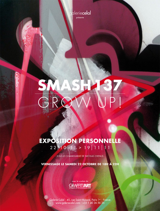 La Galerie Celal organise la première exposition solo en France du writer suisse Smash137 à Paris du 22 Octobre au 19 Novembre 2011.