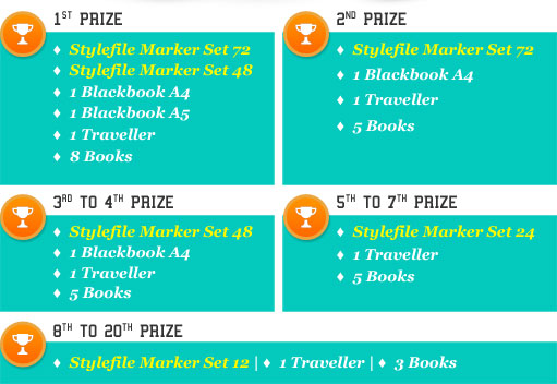 More than 3 000€ value prizes are in the balance, with a real jackpot for the grand winner: Stylefile Marker graphic pens of course, but also blackbooks and many books such as Stylefile Blackbook Sessions 4, the brand new After The Laughter from Herakut, Kacao77 Universes, or the very popular International Topsprayer™ by Taps&Moses. Here's the complete prize list: