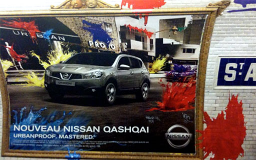 Couvrir les stations du métro parisien de tâches de peinture est illégal… sauf si vous payez. C'est ce que viens de faire Nissan, pour assurer la promo de son dernier 4×4 Qashqai. D'où l'ambiance paintball qui règne dans certaines stations de métro depuis 2 jours.
