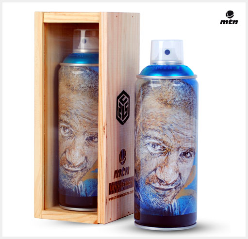 Le design de la bombe est lithographié, c'est-à-dire imprimé directement sur le métal et non pas apposé sur une simple étiquette papier. Ce modèle est produit en série limitée à 500 exemplaires estampillés par l'artiste. Chaque bombe est vendue dans une boîte vitrée en bois, de quoi satisfaire les collectionneurs les plus exigeants.