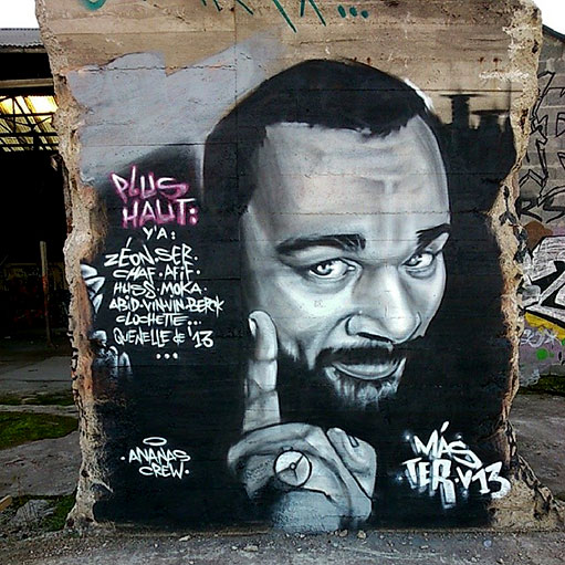 Et bien moi je suis très content de voir ces graffeurs faire du soutien à Dieudonné! Comme ça je peux très bien noter qui est qui, me conforter dans l’idée que le milieu est rempli de salauds en tout genre! Je me permets de donner mon humble avis concernant l’interdiction de ces « spectacles »: Donnons à Dieudo sa chance d’être anti-système: pas de représentations dans les salles où il y a délégation de service public/subventions publiques comme les Zénith! Si le pouvoir désigne de lui-même un ennemi, c’est que celui-ci ne représente pas un vrai danger. http://quartierslibres.wordpress.com/