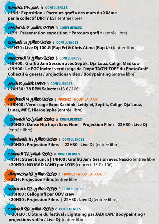 Pour cette seconde édition, Confluences et la mairie du XXème à Paris ont notamment invité le PhotoGraff Collectif à mettre en œuvre Tag'n'tof, une exposition photo participative qui mélange photos, collages et dessins, avec le concours d'All City et de la marque de feutres Posca.