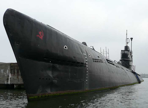 Ce Zulu V Class, récemment renommé Foxtrot, est un sous-marin russe construit dans les années 50, capable de lancer des missiles V-2 et Scud; il est depuis quelques années amarré dans le port d'Amsterdam, en Hollande.